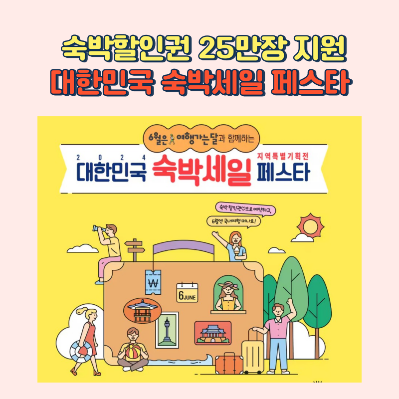 다가오는 6월, 여행을 계획하고 계신가요? 2024년 6월 3일부터 6월 30일까지 진행되는 '여행가는 달' 숙박 할인 행사를 소개합니다. 전국 곳곳에서 다양한 숙박 시설 할인 혜택을 누리며 멋진 여행을 즐겨보세요!