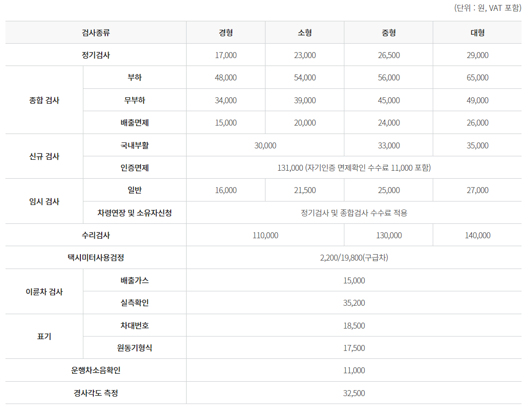 자동차 검사 비용