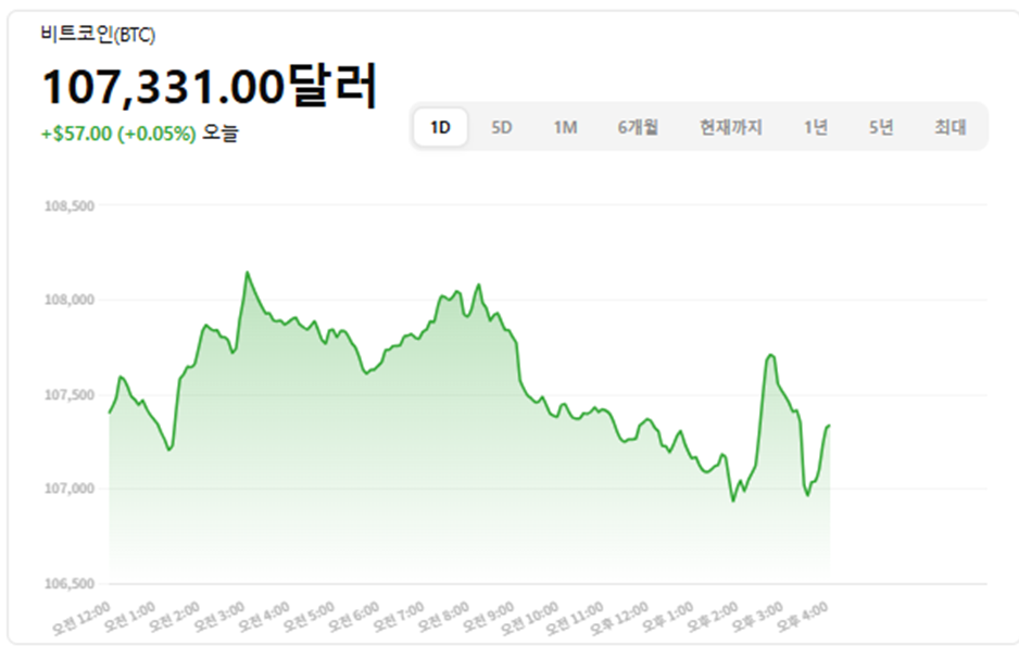 비트코인은 여전히 암호화폐 시장의 대장 역할을 톡톡히 하고 있어요. 현재 가격은 약 $107,330 부근에서 움직이고 있고, 장중에는 $108,146까지 오르기도 했지만, $106,934까지 내려오기도 하면서 변동성을 보여주고 있네요. 그니까요, 하루에도 이렇게 오르락내리락 하니 늘 긴장하게 되는 것 같아요.