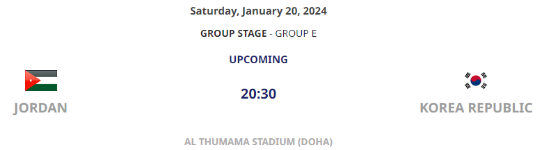2024년 1월 20일(토) 20시 30분  대한민국 : 요르단
